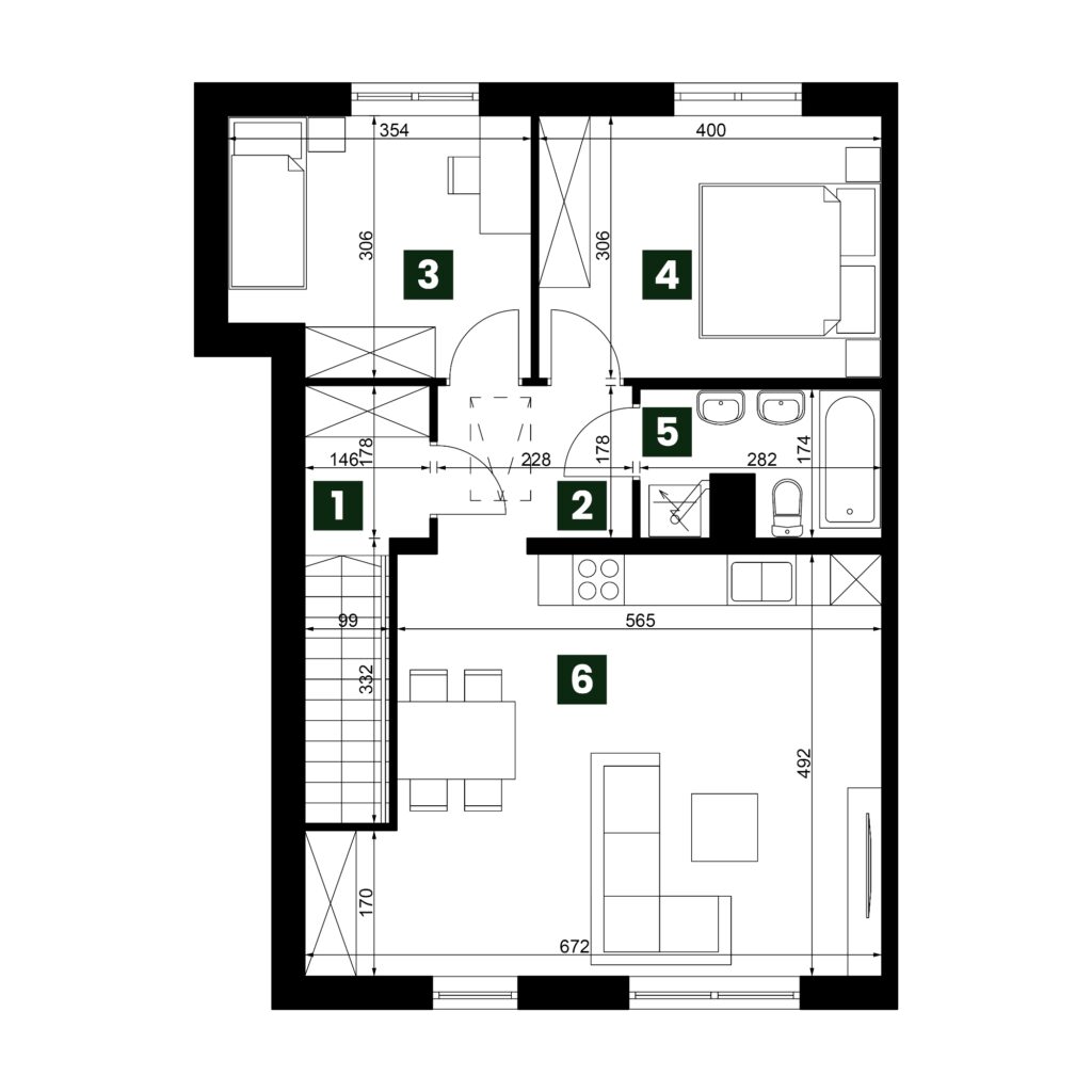 Oferujemy dwa atrakcyjne układy mieszkań: 58,76 m² na parterze i 65,68 m² na piętrze z dodatkowym, ocieplonym strychem o powierzchni ok. 20 m². Przemyślane rozkłady, możliwość wydzielenia dodatkowego pokoju na piętrze oraz duże przeszklenia sprawiają, że wnętrza są jasne, funkcjonalne i gotowe na Twoje potrzeby. To przestrzeń, którą łatwo dopasujesz do swojego stylu życia – czy mieszkasz solo, z partnerem, czy z całą rodziną.Rozwiń ∨