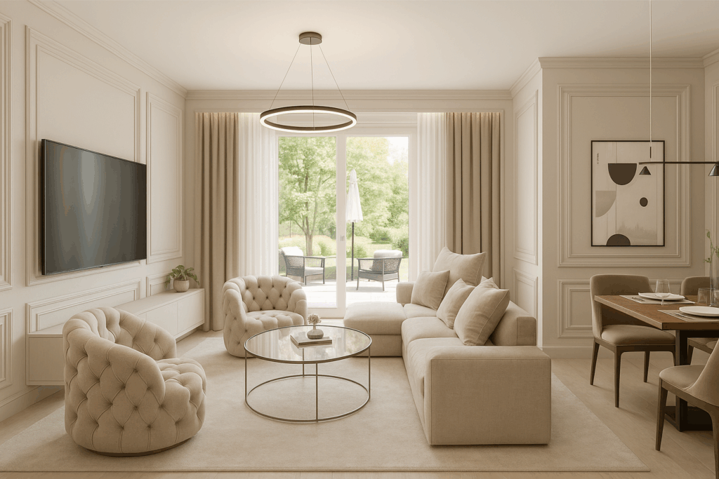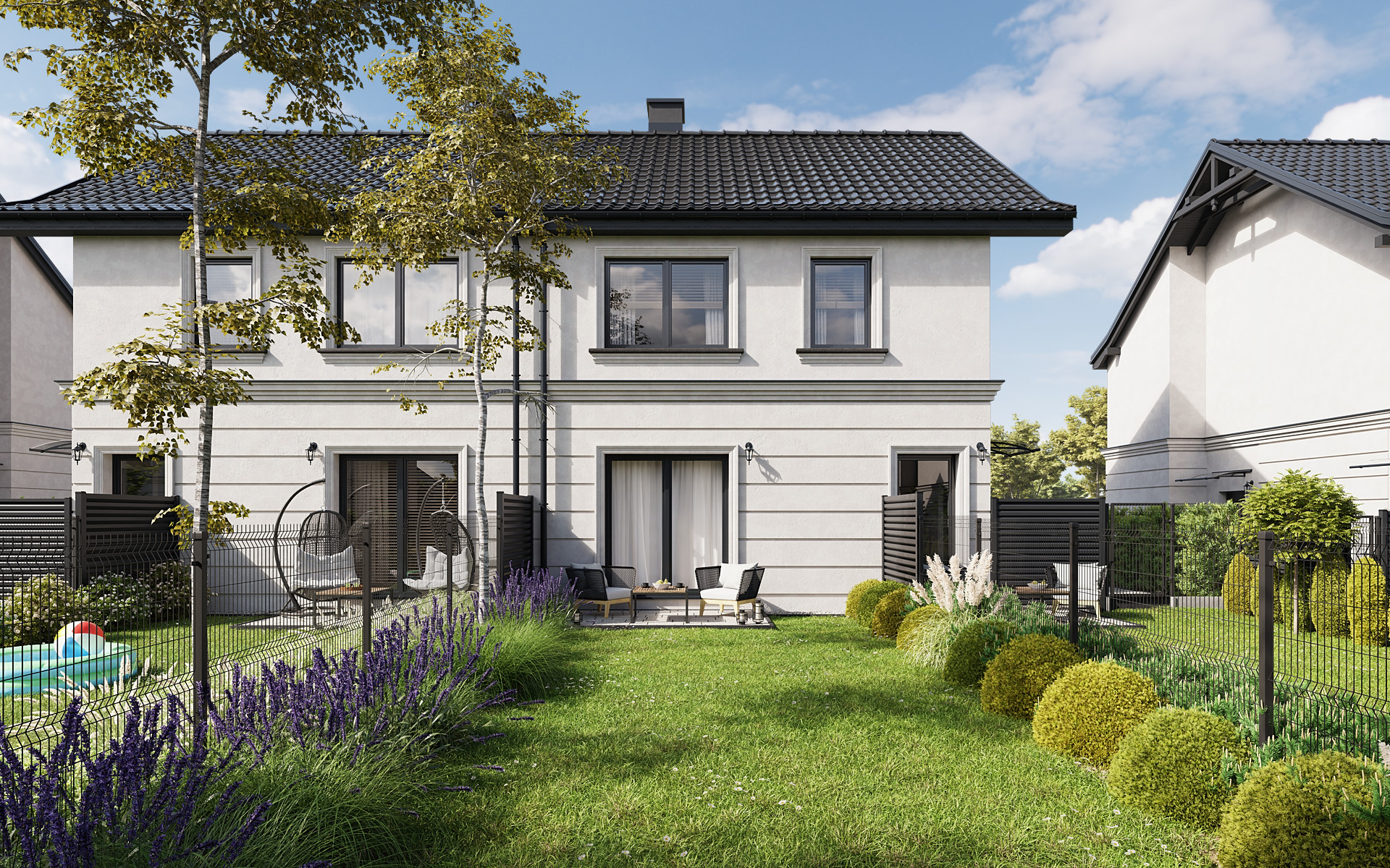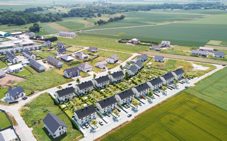 Ogrody Pszenna to nowoczesna inwestycja, która wyróżnia się spokojnym charakterem i przemyślaną architekturą. Znajdziesz tu tylko 52 mieszkania – każde z własnym wejściem, ogrodem i miejscami postojowymi. Klasyczna, biała elewacja ze sztukaterią, antracytowe detale oraz połyskująca dachówka tworzą estetyczny, elegancki styl, który przyciąga wzrok. To osiedle zaprojektowane z myślą o codziennym komforcie i wysokim standardzie życia.